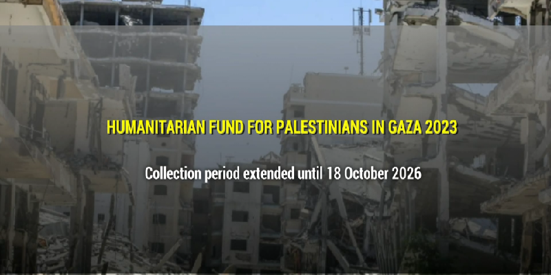 Humanitarian Fund for Palestinians in Gaza 2023The collection period for the Humanitarian Fund for Palestinians in Gaza 2023 has been extended for another 6 months from 19th April 2026 to 18th October 2026 for the public to continue to donate in order to alleviate the suffering and burden of the Palestinian people in Gaza. The extension of collection period of the fund is by the consent of His Majesty the Sultan and Yang Di-Pertuan of Brunei Darussalam.