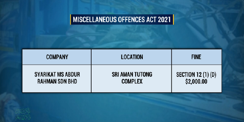 Miscellaneous Offences Act 2021The Tutong District Office Enforcement Unit has issued a compound fine on a company for violating the Miscellaneous Offences Act 2021, Chapter 30.